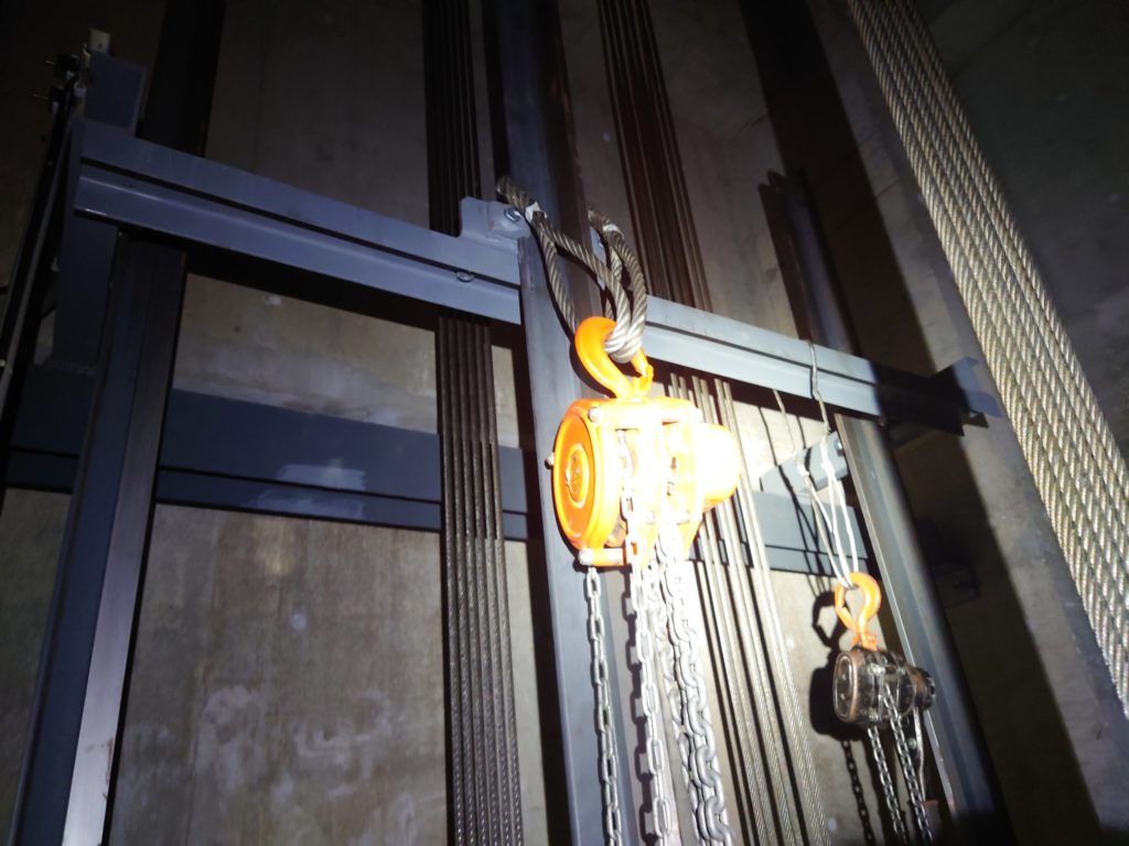 令和4年9月26・27日 荷物用エレベーター 主ロープ交換工事