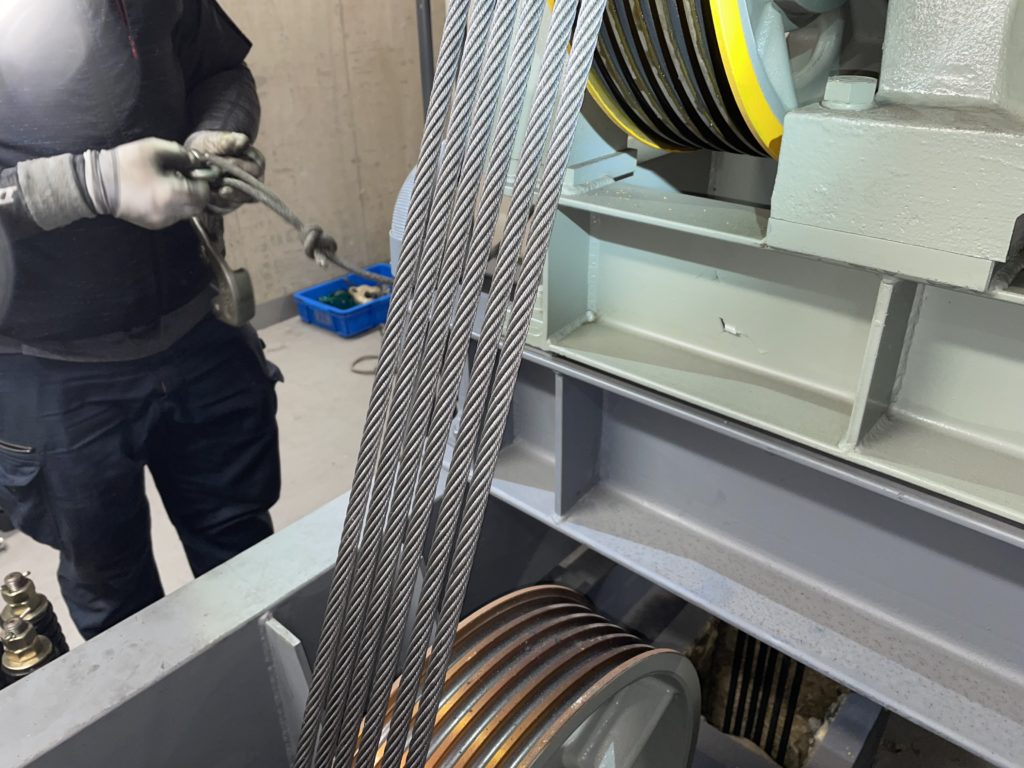 荷物用エレベーターの主ロープ交換工事を行いました。
