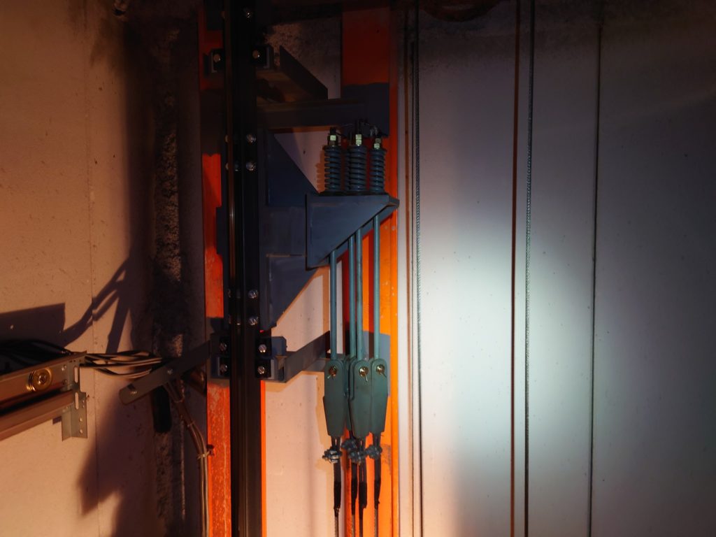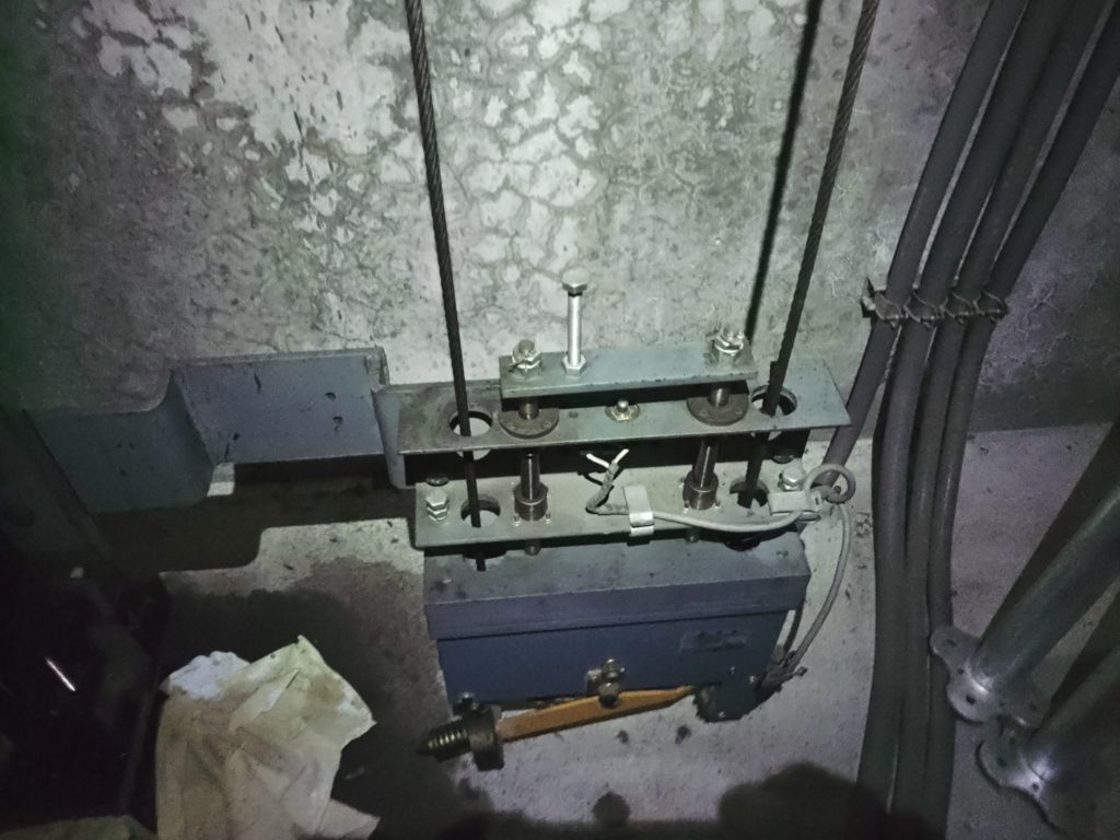 令和4年10月12日 乗用エレベーター 主ロープ交換工事 2022.12.26 乗用エレベーターの主ロープ交換工事を行いました。 主ロープ(交換前) 主ロープ(交換中) 主ロープ(交換後) ガバナロープ(交換中) ガバナロープ(交換後)