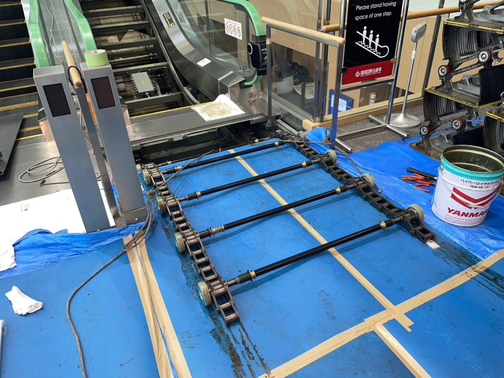 エスカレーターのステップチェーン交換工事を行いました。